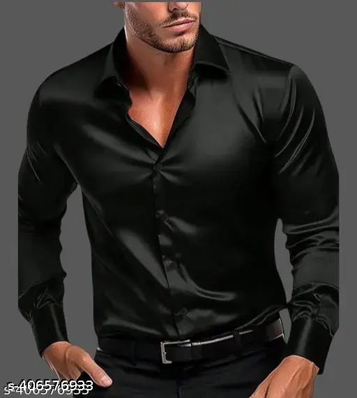 Men Regular Fit Solid Spread Collar Casual Shirt for partywear -Black